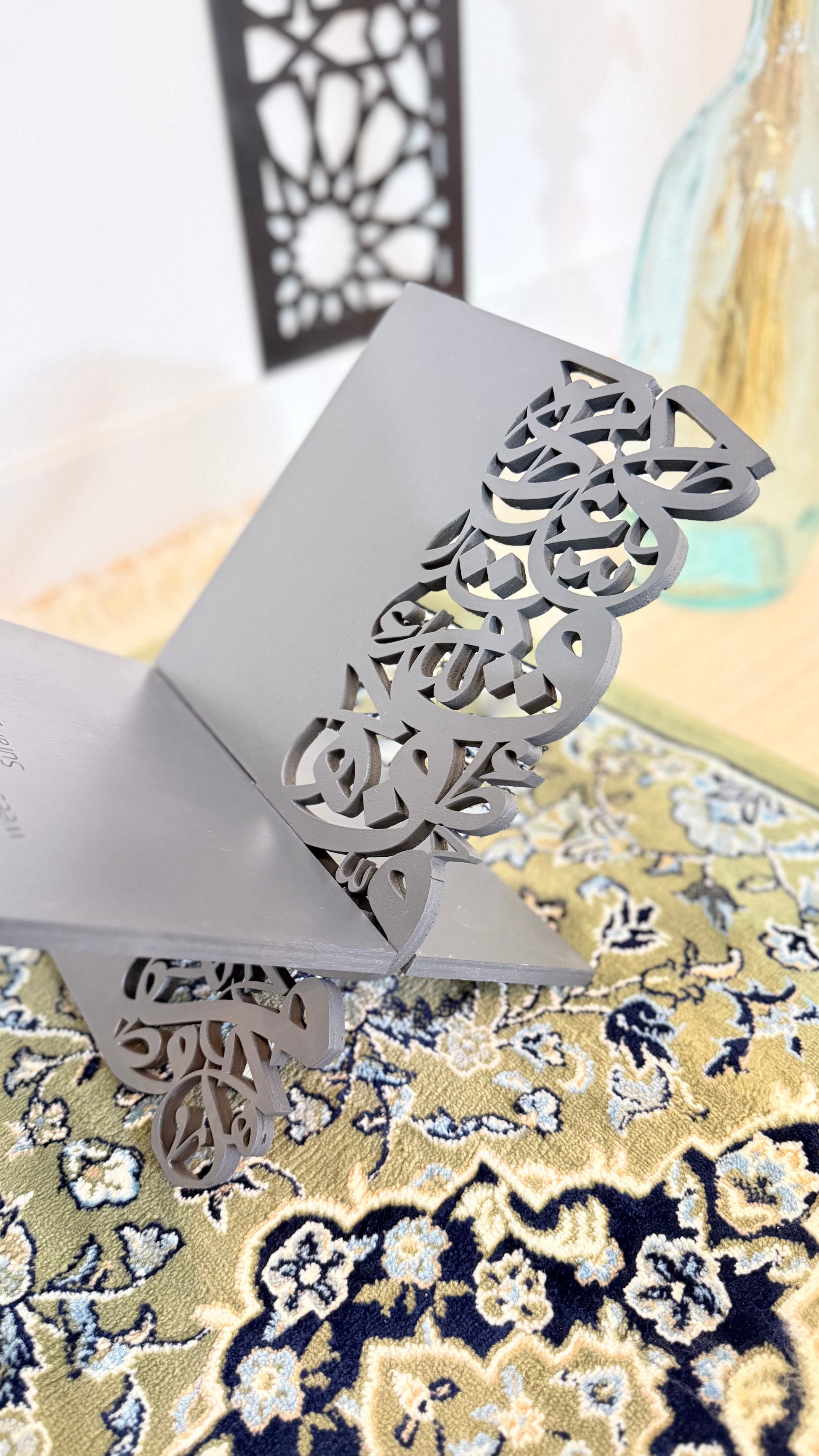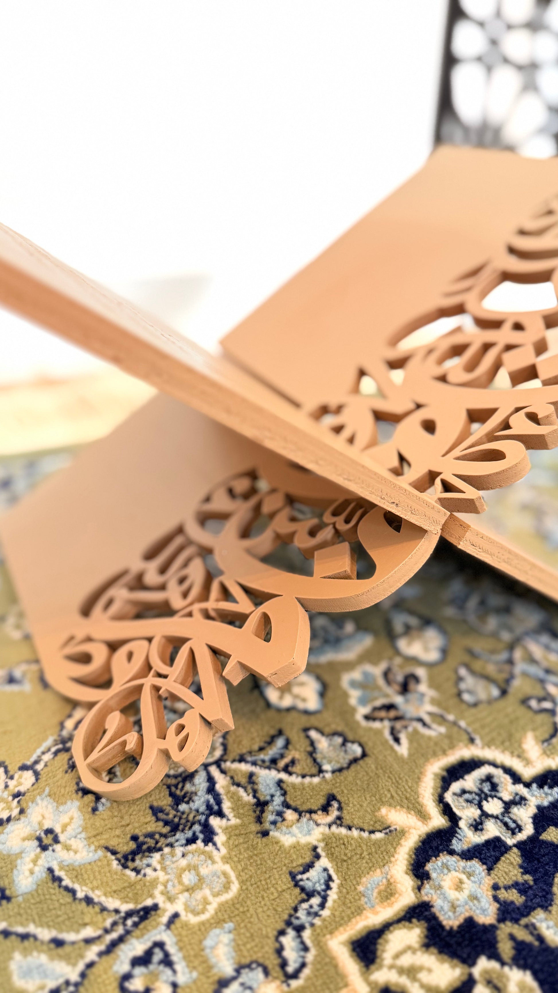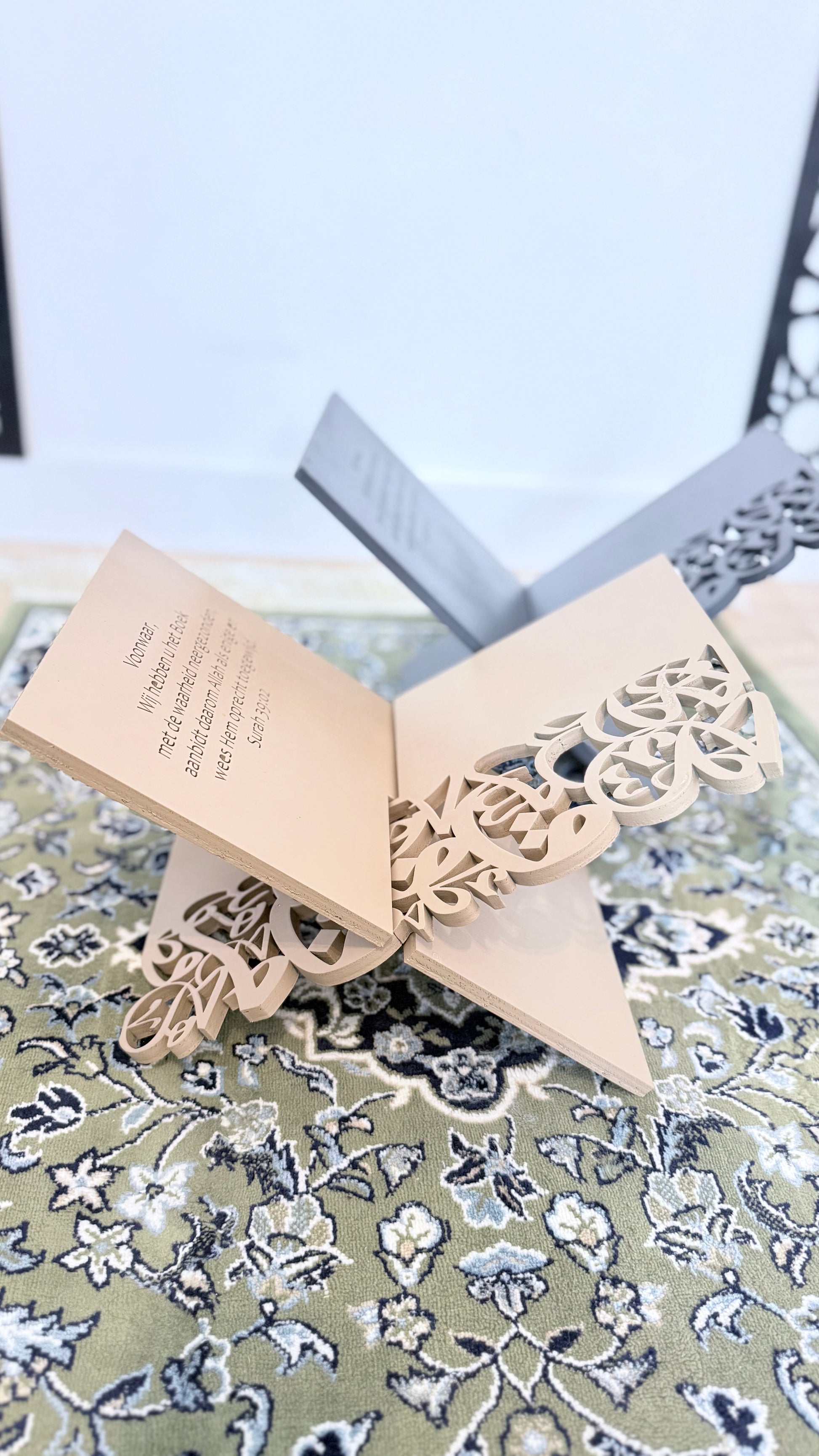 De Reyhaal is een prachtig vormgegeven Quran-standaard, zorgvuldig met laser uitgesneden en afgewerkt. Het is niet alleen een functioneel hulpmiddel om de Mushaf op te plaatsen tijdens het lezen, maar ook een stijlvolle toevoeging aan je interieur.